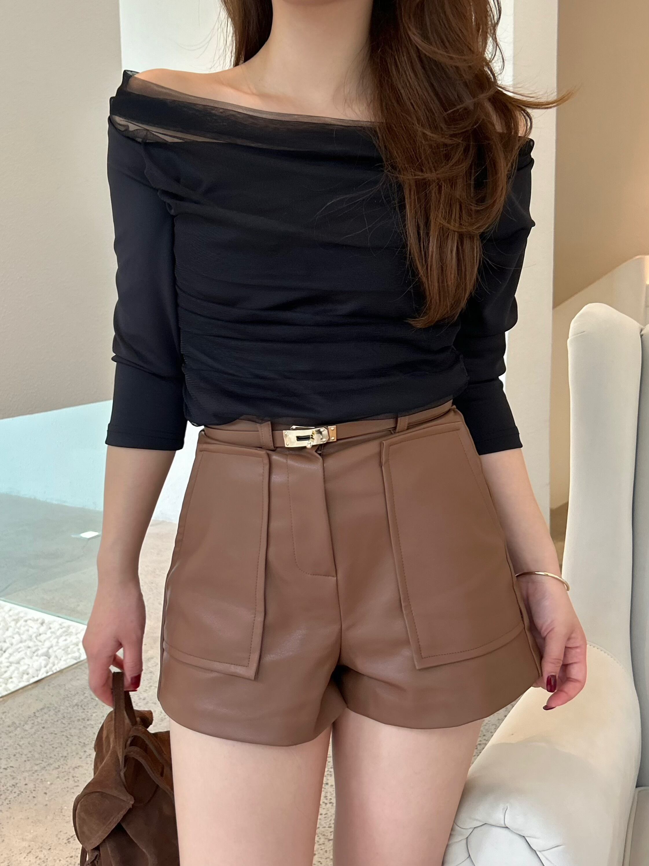 【SALE】leather short pants (belt set) / 3color