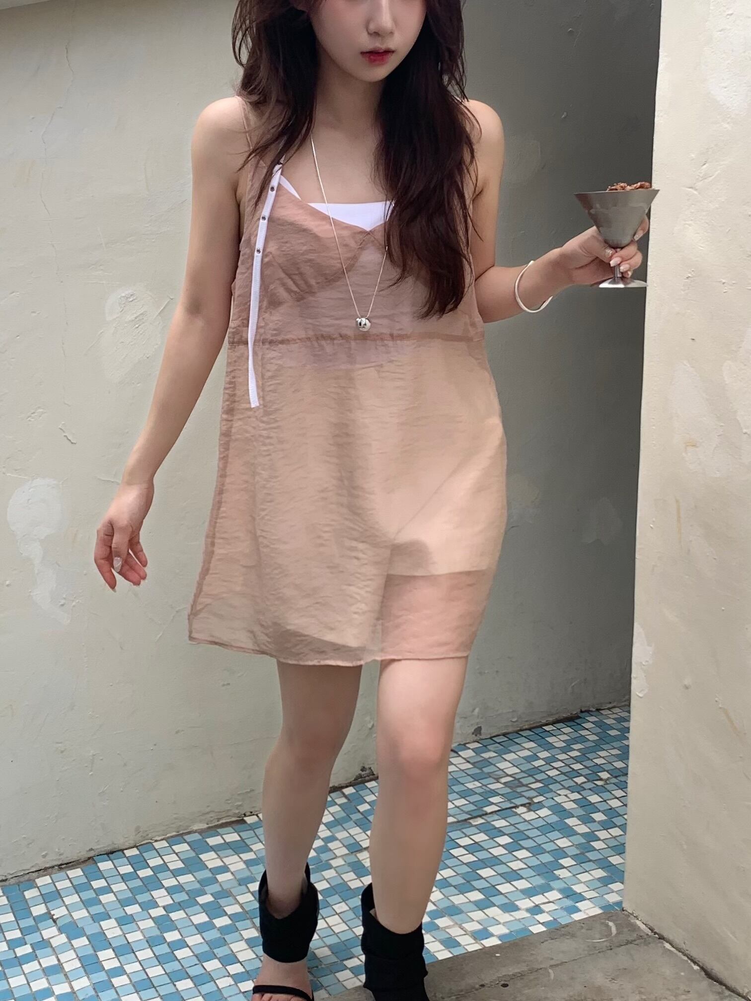 シースルーの涼し気なミディアムワンピ。