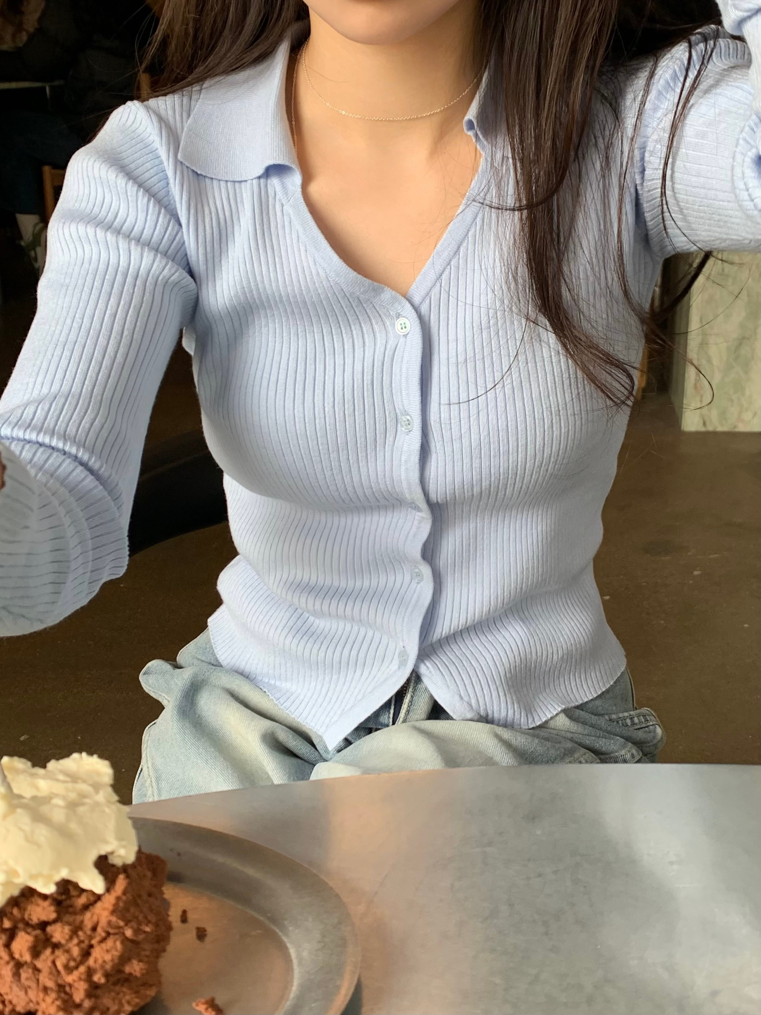 襟つきでオフィスルックにも◎